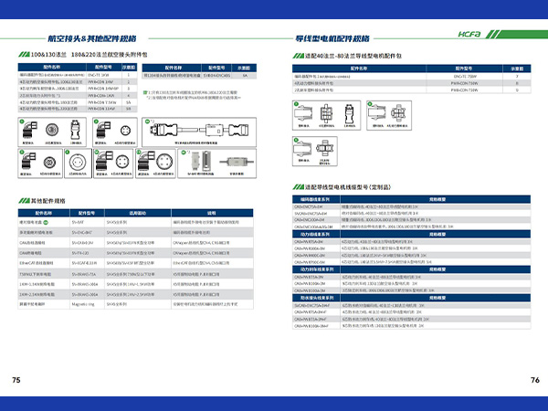 • 連接器型電機線束配件表